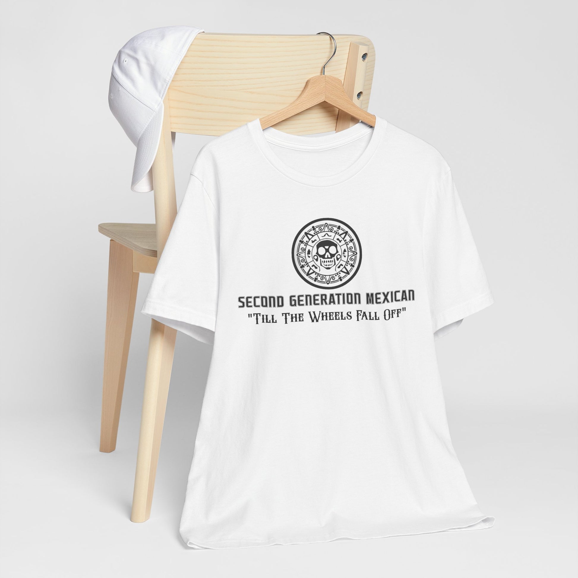 Embrace your second-generation Mexican American roots with this T-Shirt featuring chicano culture and Aztec art. The design exudes a sense of bravery and warrior spirit, perfect for those proud of their Mexican heritage. Ideal for celebrating Mexican holidays and cultural observances.